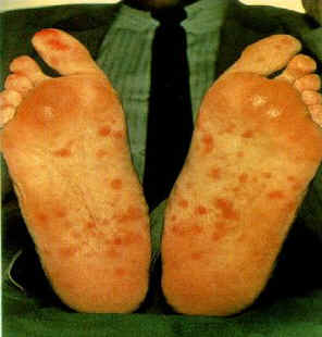 - Start to see a rash developing on hands, feet, and possibly other areas of the body.
